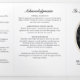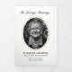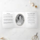 Élégant programme de mémorial noir et blanc avec des cadres photo ovale dorés offrant un hommage intemporel et digne pour honorer la vie et l'héritage d'un être cher. Ce programme de funérailles triptyque présente une mise en page raffinée qui équilibre le contenu significatif avec un design classique, y compris des sections pour une nécrologie, l'ordre du service, les remerciements, un poème et deux photos. Le format structuré guide les participants à travers les funérailles, le service commémoratif ou la célébration de la vie avec grâce et clarté, tandis que les grands panneaux photo vous permettent de mettre en valeur des souvenirs chéris. Conçu avec une esthétique minimaliste, ce programme associe un texte noir net à un espace blanc généreux, garantissant que tous les détails sont faciles à lire et soigneusement organisés. L'utilisation de photos encadrées d'or ajoute une touche chaleureuse et élégante sans détourner de la simplicité globale. Idéal pour les mémoriaux traditionnels et modernes, ce design offre un moyen professionnel et sincère de partager l'histoire de la vie d'un être cher. Entièrement personnal