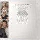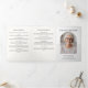 Ce programme de funérailles plié en trois est conçu pour les familles qui ont besoin d'une mise en page claire et complète facile à personnaliser. Il combine une section d'ordre de service avec un collage de photos, vous permettant d'inclure un mélange significatif de portraits et de souvenirs de famille sans surcharger la page. La mise en page vous guide à travers les contenus clés tels que les détails du service, les remerciements, le texte d'hommage et une section dédiée aux paroles de réconfort pour un poème ou une prière, afin que rien d'important ne soit oublié pendant une période stressante. Le texte est organisé pour une lecture facile, aidant les invités à suivre le service, qu'il s'agisse d'un enterrement traditionnel, d'un mémorial ou d'une célébration de la vie. Tous les textes et photos peuvent être modifiés directement sur Zazzle, sans compétences en design nécessaires. Un choix pratique