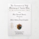 With explanations of the Mass displayed throughout, this elegant design also includes the name of the wedding officiant, names of altar servers, names of the parents of the bride and parents of the groom, wedding party names including the names for a maid-of-honor and best man, room for up to seven bridesmaids and groomsmen names, plus the names of the flower-girl and ring bearer.