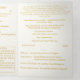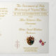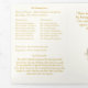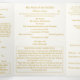 With explanations of the Mass displayed throughout, this elegant design also includes the name of the wedding officiant, names of altar servers, names of the parents of the bride and parents of the groom, wedding party names including the names for a maid-of-honor and best man, room for up to seven bridesmaids and groomsmen names, plus the names of the flower-girl and ring bearer.