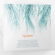 Aqua turquoise bleu et rouge orange tropicale palmier frond aquarelle art triplé carré en forme de programme de cérémonie mariage. Bel programme de mariage idéal pour mariage tropical ou subtropical ou de style plage de palmiers. Personnalisez avec vos propres détails, y compris votre propre accueil, cérémonie, mariage, souvenir et merci et photo de couple. Des invitations et d'autres articles correspondants sont également disponibles. © frondes de palmier originales aquarelle peinture art et design par Sarah Trett pour www.mylittleedenweddings.com