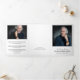 Triple programme funéraire où vous pouvez ajouter plusieurs photos de votre être aimé avec une nécrologie, ordre de service, leur psaume préféré, poème, ou prière, et des remerciements en polices noires élégantes contre les arrière - plans blancs. Dans la mémoire aimante est écrit sur la couverture du programme funéraire photo dans un script élégant. Programme funéraire blanc personnalisé avec photo et texte.