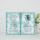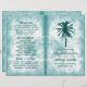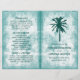 Ces programmes bi-plis sont parfaits pour tout couple qui planifie une célébration romantique de mariage sur la plage. Le design présente un palmier vert turquoise tropical sur un arrière - plan à effet texturé turquoise et blanc avec un libellé modifiable coordonné en couleur. Le design simple peut être personnalisé pour votre événement spécial et sera la commande parfaite pour toute soirée tropicale à thème, y compris : douches nuptiales, fiançailles, wedding showers, fêtes d'anniversaire et bien plus encore.
