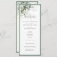 Un programme de mariage formel, avec un bouquet floral de bleu poussiéreux, vert sauge et une végétation botanique d'eucalyptus, est bordé d'un vert gris doux. Personnalisez vos détails accentués avec une belle calligraphie moderne lettrée à la main en noir doux. Ce programme a été conçu pour un grand mariage, comme une masse catholique pleine avec beaucoup de servantes d'accueil et de groomsmen. Si vous avez besoin de ce customisé plus à vos besoins, n'hésitez pas à contacter le designer! Une partie d'une collection, voir la collection complète ici : https://www.zazzle.com/collections/elegant_botanical_greenery_floral_watercolor_suite-119826569235577486 Contacter le concepteur pour les produits correspondants. Copyright Invitations élégants, tous droits réservés.