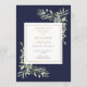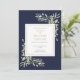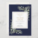 Un élégant programme de commémoration funéraire moderne bleu marine et or personnalisé aquarelle botanique vert ordre de service. Conçu par Thisisnotme©