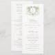 Vintage Élégant Floral Crest Olive Green Wedding Programme. Ordre Mariage traditionnel. Mariage de la crête végétale vintage Programme de la crête de monogramme