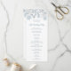 Élégant et simple programme de mariage d'hiver avec des flocons de neige bleu argenté. Idéal pour les mariages de Noël et autres événements saisonniers et de vacances.