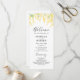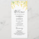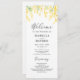 Jaune Printemps Élégant Floral Mariage Plat Programme. Élégant mimosaflowers jaune programme de mariage floral avec belle aquarelle peinte à la main bouquets de mimosa en métal argenté et bordures avec script de calligraphie moderne. Éléments correspondants disponibles.