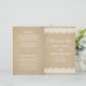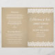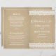 Les programmes de feuilles de mariage comprennent "Celebration of Love" en écriture, une charmante conception de bordure illustrée de dentelle vintage blanche fleurie et pointillée, et un arrière - plan avec un aspect rustique de papier kraft brun texturé. Personnalisez le texte personnalisé pour votre fête de mariage, informations de cérémonie, et message de remerciement. Remarque : ces programmes de papier poids texte arrivent à plat et nécessitent un pliage pour être assemblés.