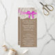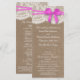La collection rustique de mariage arc rose est un design étonnant avec un joli arrière - plan rustique effet burlap avec un ensemble romantique vintage effet dentelle blanche et un superbe arc rose. Ces programmes peuvent être personnalisés pour votre occasion spéciale et feraient le modèle parfait pour les mariages, douches nuptiales, fêtes de fiançailles, fêtes d'anniversaire et bien plus encore. Veuillez noter que Zazzle ne vend que des produits imprimés, de sorte que cet article n'a pas de véritables boucles, dentelles ou rubans/archets. AFFICHER LES ÉLÉMENTS CORRESPONDANTS POUR CETTE COLLECTION