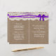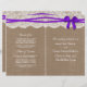 La collection rustique de mariage à arc violet est un design étonnant avec un joli arrière - plan rustique effet burlap avec un ensemble romantique vintage effet dentelle blanche et un superbe arc violet. Ces programmes peuvent être personnalisés pour votre occasion spéciale et feraient le modèle parfait pour les mariages, douches nuptiales, fêtes de fiançailles, fêtes d'anniversaire et bien plus encore. *Veuillez noter que Zazzle ne vend que des produits imprimés, de sorte que cet article n'a pas de véritables boucles, dentelles ou rubans/archets.