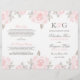Un design de programme de feuille élégant et romantique comporte un monogramme des noms de la mariée et du marié, des informations sur la cérémonie de mariage de couleur rose et gris ardoise encadrées par une bordure de roses roses douces avec des feuilles vert / gris. Les fleurs ont une belle apparence peinte à l'aquarelle. Remarque : ces programmes en papier de poids de texte arrivent à plat et nécessitent un pliage pour assembler.