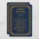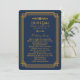 Ces programmes de mariage sont dotés d'une palette de couleurs bleu et or, d'un cadre géométrique et d'autres détails stylistiques inspirés de l'Art Déco et des années folles. Vous pouvez customiser les champs de texte d'exemple à votre convenance.
