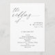 Ces programmes de mariage design minimaliste et élégant, élégants et de script moderne, sont dotés d'une calligraphie simple et élégante, associée à une police serif simple. Ces programmes de mariage 5x7 sont plats avec un avant et un arrière. Votre mariage et message de remerciement sont à l'arrière. Afficher les pièces correspondantes dans cette collection mariage.