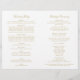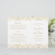 De luxueux motifs en damas doré encadrent "Cérémonie de mariage unissant" en élégante écriture sur un fond blanc immaculé pour un programme de cérémonie avec une opulence à l'ancienne. Le motif complexe de filigrane doré crée une bordure luxueuse, avec un fond coordonné d'inspiration vintage. Les pages intérieures sont entièrement personnalisables pour votre cortège nuptial, l'ordre de la cérémonie et un message de remerciement personnel sur la couverture arrière. Les programmes sont imprimés sur du papier de poids texte et arrivent à plat, nécessitant un simple pliage au centre.