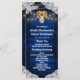 Programmes de mariage en bois de jarre de maçon tournesol - comportent un fond en bois de grange bleu bordé de dentelle et décoré de lumières scintillantes à cordes de couleur chaude. Le design comporte également un bouquet de tournesols à l'intérieur d'un pot Mason que vous pouvez personnaliser avec les initiales de votre choix.