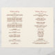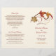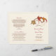 Conception de programme de cérémonie de mariage sur le thème de l'automne avec un fond ivoire présentant des rouleaux élégants et des feuilles dans des couleurs d'automne Personnalisez le texte personnalisé pour votre cortège nuptial, les informations sur la cérémonie et le message de remerciement. Remarque : ces programmes en papier de poids de texte arrivent à plat et nécessitent un pliage pour être assemblés.