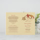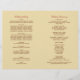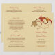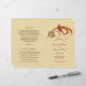 Conception de programme de cérémonie de mariage sur le thème de l'automne avec un fond jaune doré présentant des rouleaux élégants et des feuilles aux couleurs automnales. Personnalisez le texte personnalisé pour votre cortège nuptial, les informations sur la cérémonie et le message de remerciement. Remarque : ces programmes en papier de poids de texte arrivent à plat et nécessitent un pliage pour être assemblés.