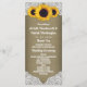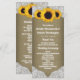 Les programmes de mariage rustiques en toile de jute et dentelle avec tournesol présentent un fond rustique de campagne imprimé avec de la toile de jute et de la dentelle avec des tournesols.
