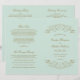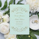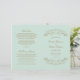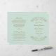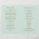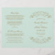 Des volutes et des fioritures décoratives encadrent ce design élégant de programme de cérémonie de mariage inspiré de l'époque. Fond vert pastel menthe avec design en or antique. Personnalisez le texte personnalisé pour votre cortège nuptial, les informations de cérémonie et le message de remerciement. Remarque : ces programmes en papier de poids de texte arrivent à plat et nécessitent un pliage pour assembler.
