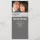 Programme de mariage photo moderne avec deux initiales de monogramme. Conception par Elke Clarke ©. Remplacez votre photo par cet exemple de photo et utilisez ce modèle de design polyvalent pour créer votre propre photo fiançailles. Utilisez les invites ou sélectionnez "customiser" pour plus d'options et utilisez les outils d'édition pour créer votre carte unique de programme de mariage. Consultez vos modifications en temps réel sur l'écran de votre ordinateur. Choisissez parmi de magnifiques stocks de papier et 8 tailles de cartes différentes.