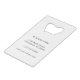 Ouverture de bouteille promotionnelle pour votre entreprise avec votre logo sur un côté et votre texte personnalisé sur l'autre. Les couleurs arrière - plan et texte peuvent être changées en couleurs de marque en modifiant l'outil de conception ou en nous contactant à l'adresse juliehortondesigns@gmail.com pour obtenir de l'aide.