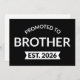 Design cool, parfait pour tout nouveau frère. Une façon géniale d'annoncer une grossesse à votre fils ou gendre! 'Promu à frère est 2026' une citation amusante pour un garçon qui aime déjà son frère ou sa soeur. Donnez ceci à votre fils pour son anniversaire ou achetez cet art si vous êtes le meilleur nouveau frère sur Terre ! Un grand cadeau pour les frères aimés, un garçon promu au grand frère, et un fils génial qui devient frère.