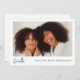 Demandez à vos demoiselles d'honneur avec style grâce à la proposition de demoiselle d'honneur photo noir chic minimaliste. Avec un design noir élégant et une photo personnelle, cette carte moderne et intemporelle est le moyen idéal pour inviter vos amies les plus proches à être à vos côtés le jour de votre mariage.