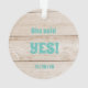 Pourquoi ne pas commémorer le jour de votre proposition de mariage avec un ornement photo personnalisé ? Le devant a une photo de "Will You Marry Me" écrit dans le sable. L'envers a un arrière - plan en bois patiné et est personnalisé avec "Elle a dit oui !" et la date. Vous pouvez personnaliser le côté arrière comme vous le souhaitez, y compris changer la couleur et la police. Un ornement de proposition de mariage personnalisé vous rapportera le souvenir de ce jour spécial année après année pendant que vous accrochez ceci sur votre sapin de Noël.