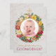 Proposition de la mère pour le baptême d'une fille Il a un espace réservé photo de petite fille dans une couronne rose sauvage avec une croix d'or sur le dessus. Sous la couronne rose, le message de proposition de la marraine est écrit dans un élégant script calligraphique, à l'exception du mot Godmère, qui est en grand casquette rouge. Sur le dos, le message est écrit dans le même script calligraphique doré. De part et d'autre, l'arrière - plan est en marbre blanc. La guirlande vintage de roses sauvages blancs, roses, rouges et jaunes est du peintre et botaniste belge Pierre-Joseph Redouté (1759-1840), du livre "Les Roses" de Pierre Joseph Redouté et Claude Antoine Thory, publié en 1817, désormais dans le domaine public. L'espace réservé photo d'une petite fille en rose est de Vera Kratochvil de Public Domain Pictures et a la version modèle.