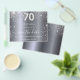 Veuillez noter que cette Enregistrer la date est sur papier de circulaire et très mince. Les enveloppes ne sont pas incluses. Pour plus d'épaisseur Save the Date card (même conception) veuillez visiter notre magasin. Un élégant Save the Date pour une fête de 70e anniversaire. Un arrière - plan métallique faux argent moderne, décoré avec de la poussière de parties scintillant. Personnalisez et ajoutez une date et un nom/âge. Le texte : Save the Date est écrit avec un grand script de style à la main tendance. Numéro 70 avec une police de style ballon.