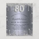Veuillez noter que cette invitation est sur papier de prospectus et très mince. Les enveloppes ne sont pas incluses. Pour des invitations plus épaisses (même conception), veuillez visiter notre magasin. Une invitation moderne, élégante et glamour pour une fête de 80e anniversaire. Un arrière - plan faux argenté, décoré de poussière de parties scintillant. Personnalisez et ajoutez votre nom et les détails de votre fête. Le numéro 80 est écrit avec une police de style ballon, script.