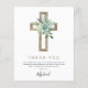 Budget Sage Green Floral Boy's Eucalyptus and Gold Foil Cross Botanical Greenery Aquarelle Religious First (1er) Holy Communion Merci Invitations.