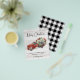 Budget Joyeux Noël Vintage Camion rouge Carte de Noël - Carte de budget comporte un pick-up rouge vintage rempli de fleurs de Noël, baies sèches et un arc noir et blanc. Votre initiale est sur le côté du camion. L'Arrière - plan est en bois patiné blanc. Joyeux Noël est tapé dans une typographie de script assez moderne. Salutation dit "VOUS SOUHAITER UNE JOLIE NOËL ET LE BONHEUR TOUJOURS, et est personnalisée avec votre nom de famille et votre année. Il s'agit de l'option valeur. Si vous préférez un stock papier plus épais, choisissez nos options de carte postale ou de carte à plat. La carte fait partie d'une collection. Conçu par Beverly Bainbridge Magnolia & Thistle