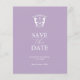 Annoncez votre fiançailles avec ce budget moderne enregistrer la feuille de date. Il présente un mélange de typographie classique et de script en blanc sur un arrière - plan lilas violet solide. Entrez le monogramme de la mariée et du marié au centre d'une crête. Toutes les couleurs peuvent être customisées pour correspondre à votre jeu de couleurs mariage. Utilisez les champs modèle pour personnaliser avec votre nom et votre date de mariage. Mélanger et correspondre avec beaucoup de mes conceptions pour créer votre thème mariage customisé. Un design minimaliste mais élégant pour les idées de mariage de jardin sur un budget. Pour voir la suite de papier à lettres mariage correspondante, visitez www.zazzle.com/dotellabelle