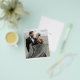 Cette carte de faire-part de mariage photo moderne à plat a un design épuré et minimaliste. Le devant présente une seule photo associée à une police élégante. Au dos, j'ai inclus la date et le lieu. J'ai défini l'arrière-plan comme transparent, de sorte que la couleur du papier servira de couleur de base. Vous pouvez choisir une couleur pour l'arrière-plan, si vous préférez. Vous pouvez également modifier le texte pour l'adapter à vos besoins. Vous voudrez peut-être supprimer un champ de texte dont vous n'avez pas besoin, ou changer la couleur ou la police de certains textes. Utilisez les outils de conception intuitifs, votre photo préférée et votre inspiration pour rendre ce faire-part de mariage à plat unique !