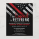 This design feas firemens flag with black and white stripes and a thin line stripe as well. "The Legend is Retiring" text sits above all of the party for the retiring firefighter, lieutenant ou chef.