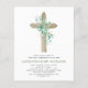 Budget Sage Green Girl's Eucalyptus and Cross Botanical Greenery Aquarelle Religious First (1er) Holy Communion Invitations.