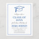 Budget 2023 Personnalisez cette invitation de Royal Blue and White Stylish Graduation Party sur arrière - plan blanc avec votre message et les détails. Cette invitation élégante comprend une photo sur le dos avec une typographie de script mignonne et élégante pour le Lycée spécial ou le Diplôme de Collège.