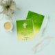 Prospectus 11,4 Cm X 14,2 Cm Croix chrétienne sur l'arrière - plan vert