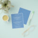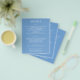 Petit papier de valeur abordable de 80 lb. poids, ces dépliants de détails de 4,5 "x 5,6" présentent vos informations en lettrage blanc chic sur fond bleu ou de n'importe quelle couleur. Un moyen parfait d'inclure des informations de mariage supplémentaires pour vos invités. Le Service de Conception en Direct peut vous aider avec la mise en page, la taille ou ajuster la couleur si nécessaire.