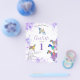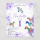 C'est son premier anniversaire avec cette amusante collection d'illustrations colorées de chèvre d'aquarelle en rose vif, violet, bleu, orange, jaune et aqua. Un animal agricole mignon invitation de fête de 1er anniversaire avec des chèvres et des chèvres debout sur les chèvres. Cette invitation amusante à la fête est facile à personnaliser pour créer une invitation unique à la fête adaptée aux enfants et aux amateurs de chèvre adulte. Colorful violet thème psychédélique chèvre illustrations originales par l'artiste Catherine Sweetman