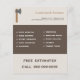Un prospectus avec une illustration de hache pour les services de menuisier, de menuisier et de bûcheron (enlèvement et élagage des arbres, bois de chauffage, broyage des souches, etc.).