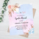 Veuillez noter que cette invitation est sur papier de prospectus et très mince. Les enveloppes ne sont pas incluses. Pour des invitations plus épaisses (même conception), veuillez visiter notre magasin. Pour un baby shower moderne de style boho, le genre révèle la fête. Un arrière - plan bleu, rose, blanc aquarellé. Décoré d'or rose, de fleurs rose et bleu clair, de roses, d'herbe pampas. Personnalisez et ajoutez un nom et des détails du parti.