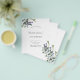 Veuillez noter que cette invitation est sur papier de prospectus et très mince. Les enveloppes ne sont pas incluses. Pour des invitations plus épaisses (même conception), veuillez visiter notre magasin. Un élégant arrière - plan blanc à l'avant. Décoré d'eucalyptus et de fleurs de lavande. Personnalisez et ajoutez vos noms et détails. Dos : arrière - plan vert gris.