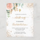 Veuillez noter que cette invitation est sur papier de prospectus et très mince. Les enveloppes ne sont pas incluses. Pour des invitations plus épaisses (même conception), veuillez visiter notre magasin. Un arrière - plan blanc décoré de verdure d'eucalyptus, d'or rose et de rose rose rousse, de feuilles dorés et de parties scintillant faux or en chute libre. Personnalisez et le nom des enfants et les détails de la cérémonie. Lettres noires et dorées. Retour : arrière - plan blanc avec gouttes de parties scintillant en faux or