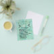 La Prière du Seigneur, ce dessin chrétien présente des colombes et des feuilles d'aquarelle bleu et vert avec la "Prière du Seigneur".