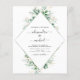 Cartes d'invitation de mariage de printemps aquarelle géométrique vert et or avec plantes botaniques et verdure d'eucalyptus sur fond blanc - comprend une typographie de script élégante et moderne avec des feuilles botaniques et de la verdure pour la célébration spéciale du jour du mariage.
