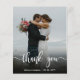 Budget Modern Script Mariage one Photo Merci personnalisé abordable petit budget flyer. Mariage moderne élégant Merci modèle papier avec une photo verticale complète sur le devant avec le texte superposé "Merci" script dans une police de typographie manuscrite en couleur blanche sur l'image. Au dos une photo horizontale et votre message de remerciement modèle. ***VEUILLEZ NOTER! *** LE DOCUMENT BUDGÉTAIRE/VOL EST EN PAPIER MINCE. AUCUNE ENVELOPPE INCLUSE.*** METTRE À NIVEAU LE PAPIER POUR UN PAPIER PLUS ÉPAISSÉ. *** Carte postale : https://www.zazzle.com/modern_hand_lettered_wedding_photo_thank_you_postcard-239089626384296356 Carnet traditionnel avec enveloppes : https://www.zazzle.com/modern_hand_lettered_wedding_photo_thank_you_card-256357026331958674 Personnalisez le nom personnalisé et le message de remerciement. Si vous préférez écrire votre note à la main, supprimez simplement l'exemple de texte pour gagner de l'espace. Si vous avez besoin d'aide ou d'un article correspondant, veuillez contacter le concepteur !