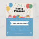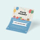 Un flyer d'organisateur de fête incluant une liste de services et décoré de gâteaux d'anniversaire, de ballons colorés, de chapeaux de fête, de twists et de confettis. Idéal pour les personnes qui organisent des événements tels que les anniversaires d'enfants ou d'adultes, les lancements de produits, les baby showers, les réunions de famille, les anniversaires de mariage, les enterrements de vie de garçon, les soirées à thème, et plus encore.